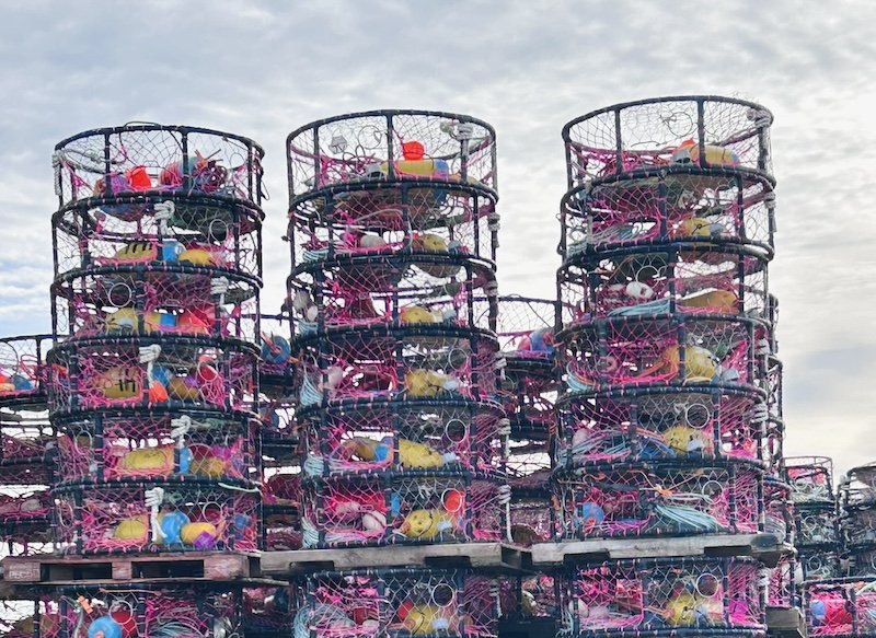 Crab pots piled high and waiting to be loaded